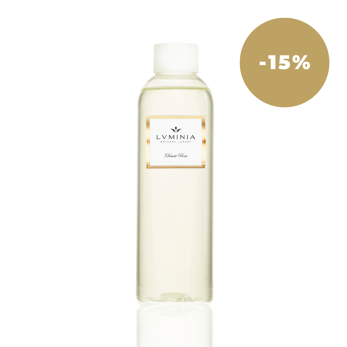 Nalijte část vonného oleje do křišťálové vázy difuzéru. Vložte 5 tyčinek vzácného bílého ratanu a nechte 12 hodin nasáknout. Následně tyčinky otočte a ponořte nenamočenou částí do oleje.