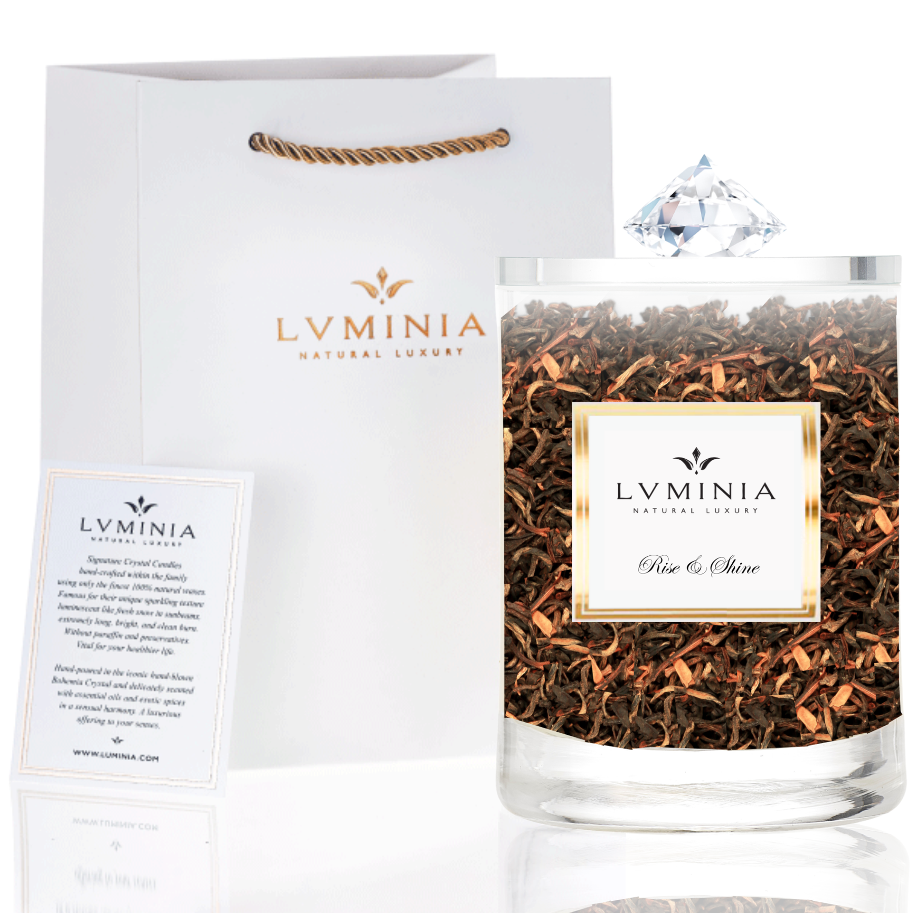 LUMINIA sypaný čaj spojuje tradiční léčivé slovenské bylinky s dotekem exotiky do jedinečné harmonie chutí a blahodárných účinků. Dokonalý dar přírody v ručně foukaném Bohemia Crystal.