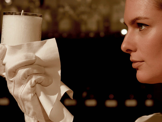 Pre stále jagavý krištáľ môžete preleštiť steny nádobky handričkou alebo papierovou utierkou. Najlepšie sa čistí, keď je nádobka ešte jemne teplá a vosk dostatočne stuhnutý. Opatrne, aby sa neodlomil knôt.